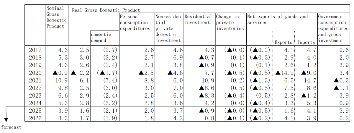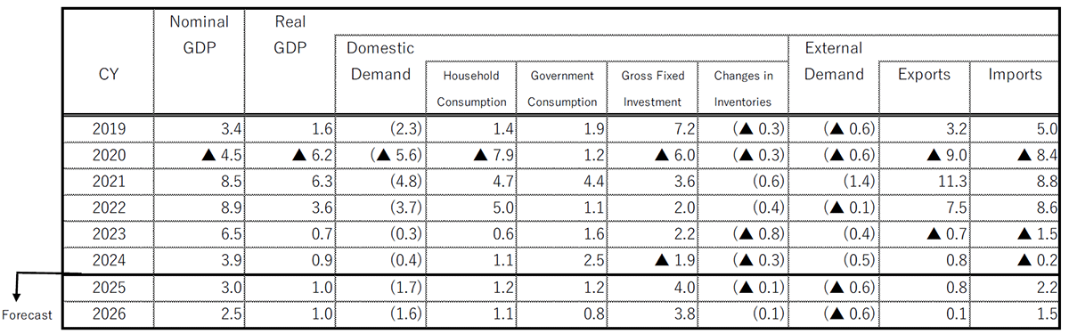 The annual growth rate for the eurozone in 2025 is expected to remain at +1.0% due to the impact of tariff increases. In 2026, fiscal spending expansion will support an acceleration in quarterly growth, but the low growth in the second half of 2025 will lower the starting point for 2026, keeping the annual growth rate at +1.0%, the same as the previous year.