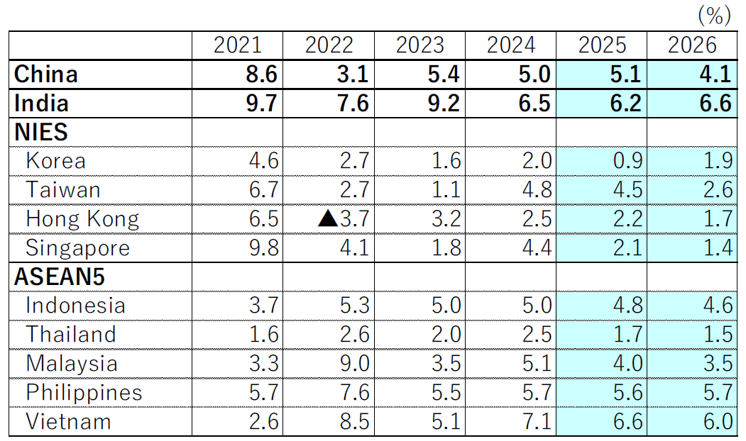 The U.S. indicated its intention to impose uniformly high reciprocal tariffs on emerging Asian economies that had benefited from the "fish in the troubled water" of expanding exports to the U.S. amid the recent years of U.S.-China friction. U.S. initially imposed reciprocal tariffs, but soon after decided to maintain the uniform portion (10%) while postponing the implementation of the additional tariffs and conducting bilateral negotiations. As a result, in the first half of this year, a surge in last-minute shipments ahead of the full enforcement of the Trump tariffs has boosted exports.