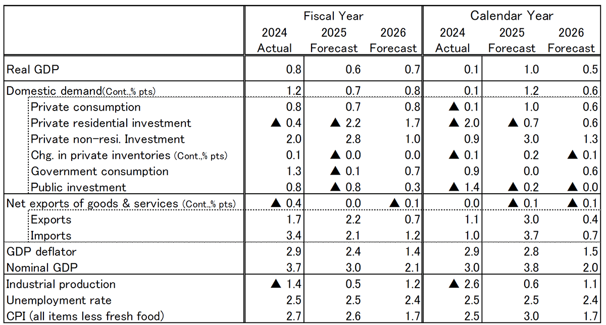 We expect a moderate pickup in FY2026. In the U.S., rate cuts are likely to resume in September 2025 amid slowing growth and a softer labor market, providing support to activity in 2026 with a lag. Tax cuts should also lift the U.S. economy. As U.S. growth stabilizes, Japan's exports are also expected to recover, helping to stem the deterioration in corporate earnings. At the 2026 spring wage negotiations, the pace of wage hikes is likely to slow versus 2025 due to weaker FY2025 earnings, but structural labor shortages should still support some wage gains. Alongside slower inflation, real wages are expected to trend moderately higher.