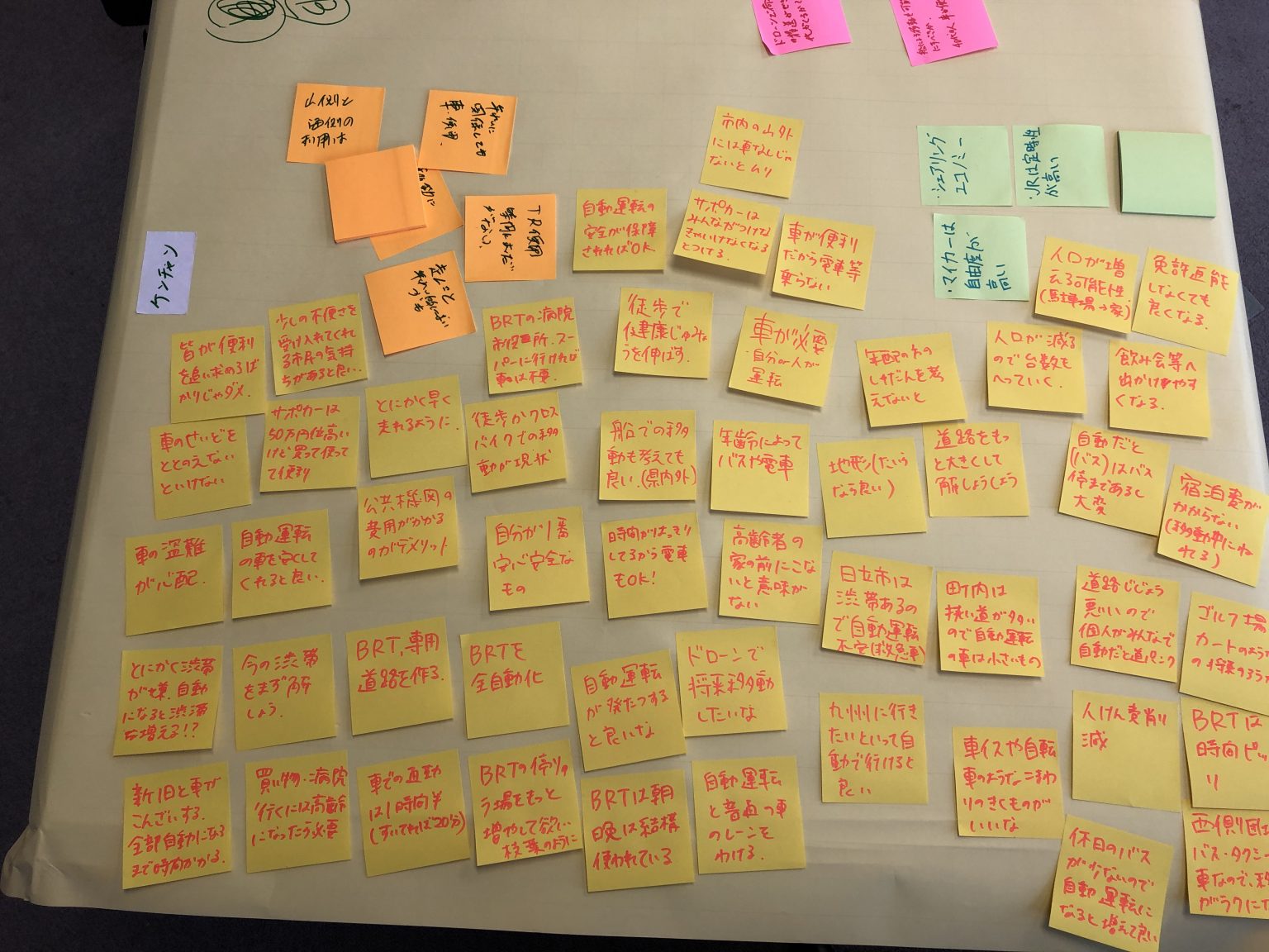 実際、ワールドカフェでいろいろなグループに話を聞いたところ、どの人もほぼ必ず口にしたのが日立市の「ひどい渋滞」。通勤通学の時間帯が過ぎても、業務に自動車を利用する人が多いため、一日中渋滞が続くのだという。ある人は、「朝の通勤の時間帯のピーク後、朝礼などで一旦事業所に人が入り、また業務で自動車に乗って出てくるまでの30分くらいの間が走行チャンス」などと言っていた。