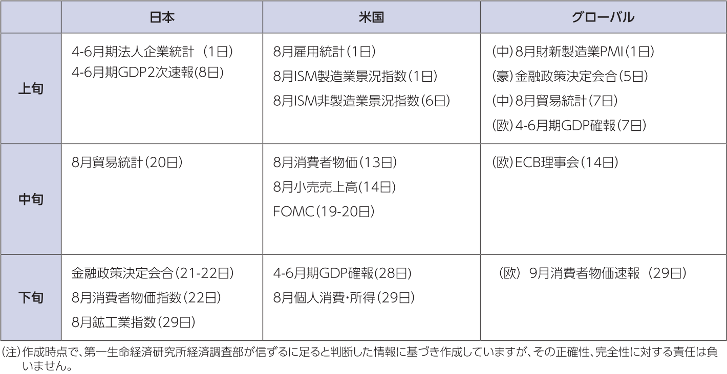 本資料は情報提供を目的として作成されたものであり、投資勧誘を目的としたものではありません。作成時点で、第一生命経済研究所が信ずるに足ると判断した情報に基づき作成していますが、その正確性、完全性に対する責任は負いません。見通しは予告なく変更されることがあります。また、記載された内容は、第一生命保険ないしはその関連会社の投資方針と常に整合的であるとは限りません。