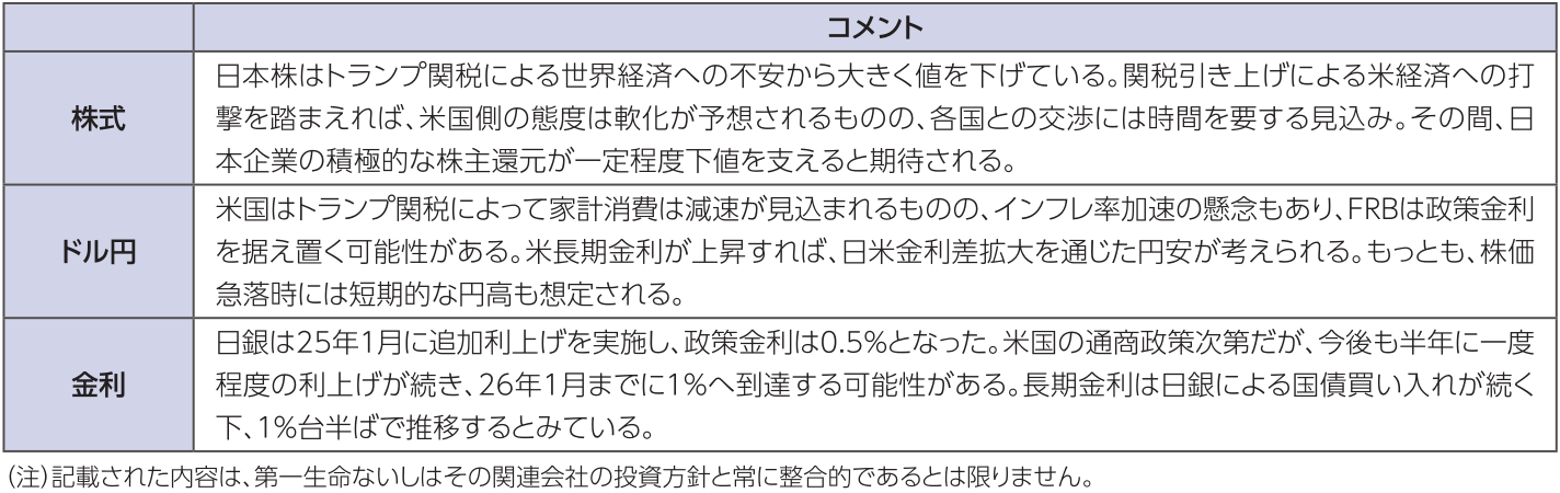本資料は情報提供を目的として作成されたものであり、投資勧誘を目的としたものではありません。作成時点で、第一生命経済研究所が信ずるに足ると判断した情報に基づき作成していますが、その正確性、完全性に対する責任は負いません。見通しは予告なく変更されることがあります。また、記載された内容は、第一生命保険ないしはその関連会社の投資方針と常に整合的であるとは限りません。