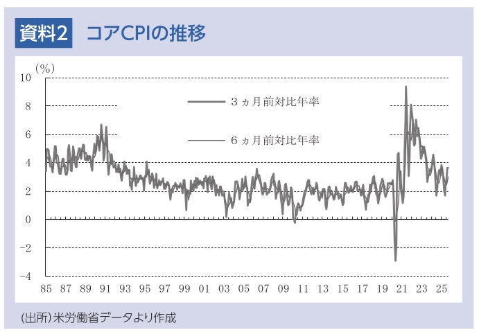 実質GDP成長率は、これまでの実質金利の上昇や、価格上昇が経済活動の抑制要因になるほか、政府機関の一部閉鎖の影響によって、25年10-12月期に前期比年率+1%台に減速すると予想される。このため長期のインフレ上振れリスクを、労働市場の悪化リスクが引き続き上回っているとFRBは判断し、リスク管理として追加利下げを実施すると予想される。