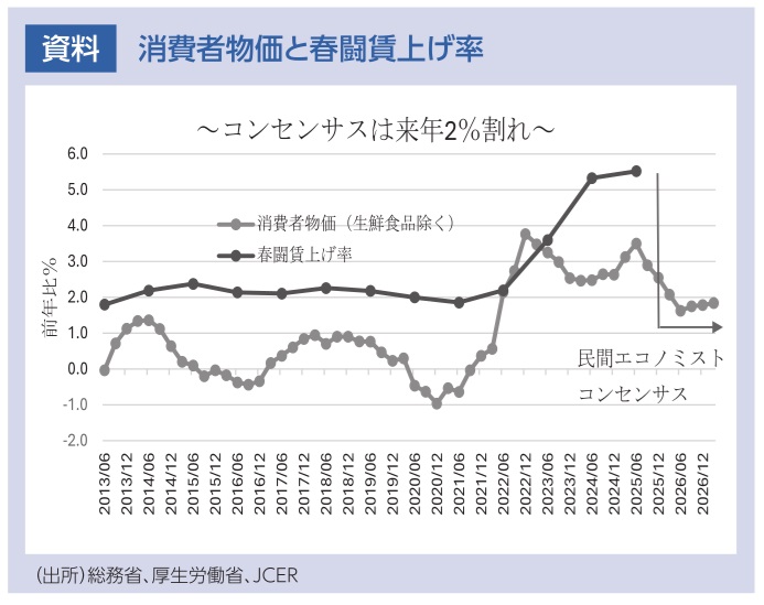 そして、こうした動きは日銀の追加利上げを促す可能性があるだろう。日銀は植田体制になってから実質賃金がマイナスでも利上げ局面に入っているが、26年はインフレ率が鈍化する一方で、25年並みの名目賃金上昇が期待される。