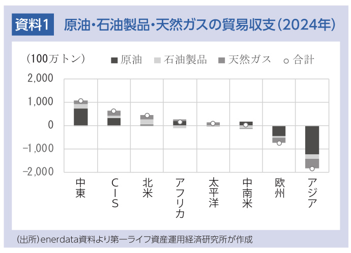 日本や多くのアジア諸国と異なり、欧州は中東産の原油・石油製品・天然ガスへの依存度がそれほど高くない。資源輸送の停滞が続いた場合も、資源不足に陥る可能性は低いが、エネルギー資源の多くを輸入に依存しているため、資源価格の上昇による打撃は避けられない。価格上昇に伴う資源国への所得移転の増加は、企業収益の圧迫、家計の光熱費負担の増加、財政赤字の拡大という形で現れる。先行き不透明感の拡大による経済活動の手控え、金融市場の動揺による逆資産効果や金融環境の引き締まり、金利上昇による需要抑制などの経路でも、景気を下押しする。