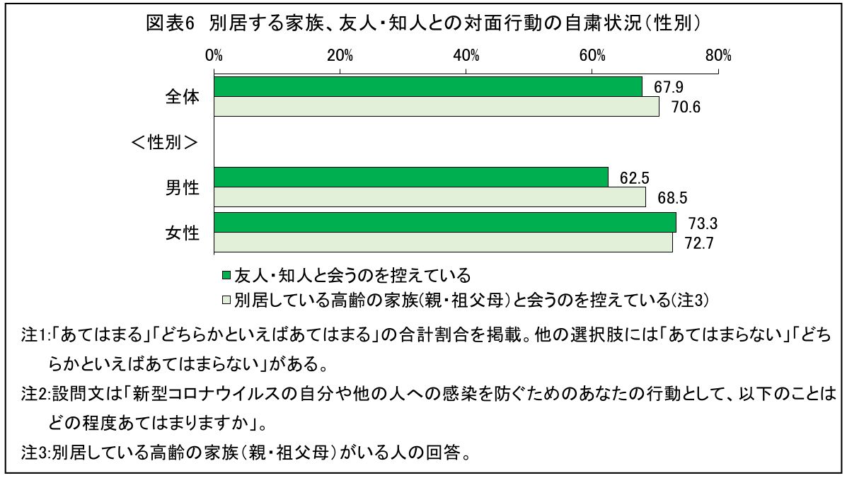 別居する高齢の家族がいる人では、7割超が会うことを自粛。