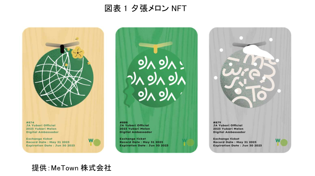 今回筆者が手にしたのは、夕張メロンの支援を通じて産地(夕張市)や生産者とつながることができる「夕張メロンNFT」だ(図表1)。このプロジェクトは、NFT発行とプラットフォームを運営する民間の企業と夕張市農業協同組合が共同で取り組む。