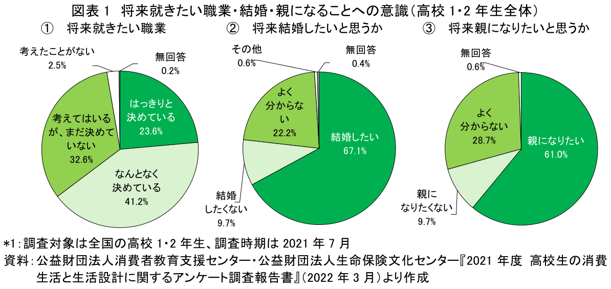 1.高校生の人生設計~職業は「なんとなく決めている」、結婚・子どもは意向ありが最多~