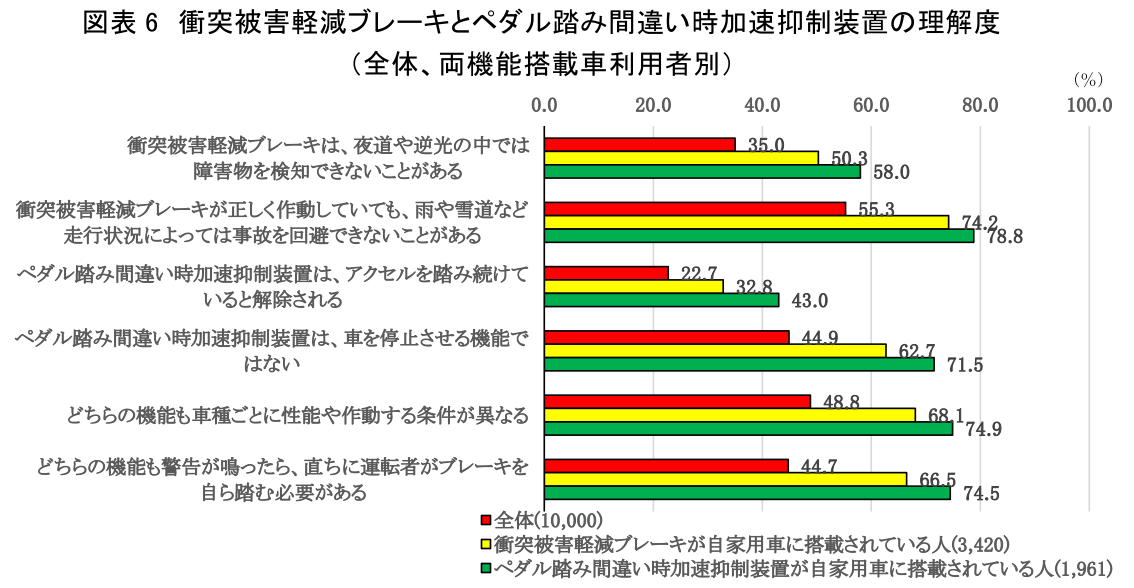 各種機能についてそれぞれ理解度をみたところ、各機能が自家用車に搭載されている人でも、理解が十分でないことが確認された(図表6)。