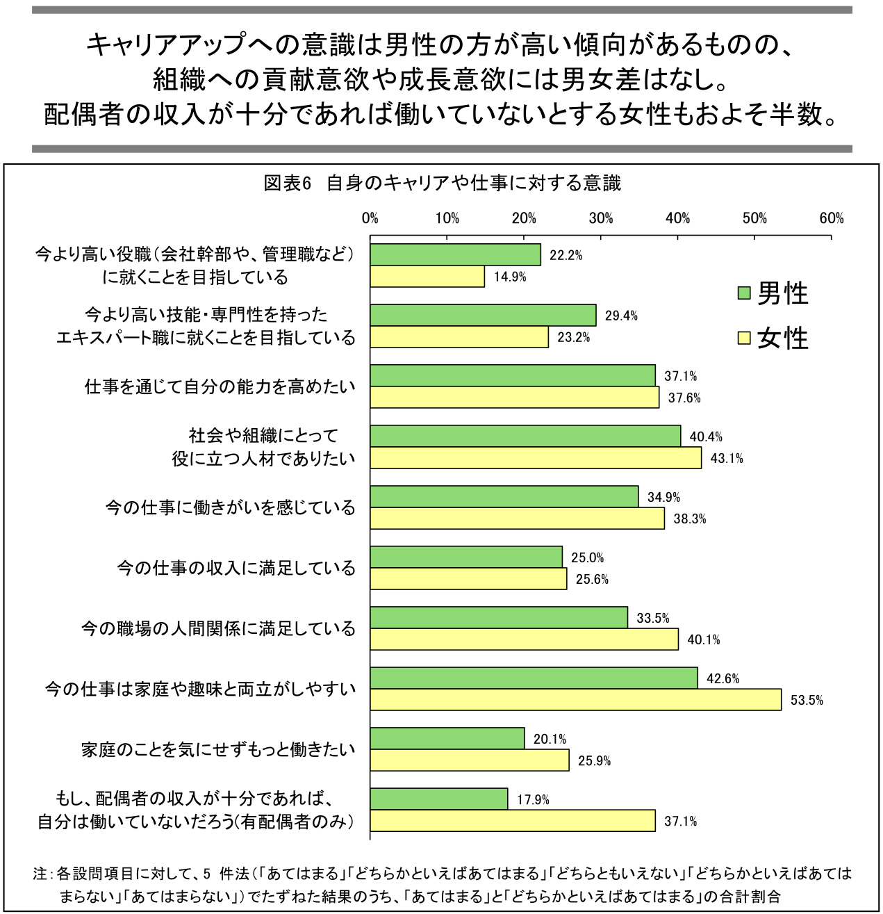 - 組織への貢献意欲や成長意欲には男女差はなし。