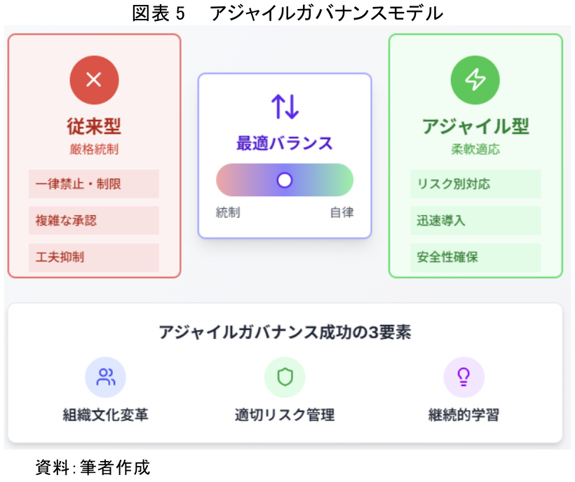 これらの障壁を乗り越え、戦略を真に成功させる鍵は、厳格すぎず、かつ緩すぎない「アジャイルなガバナンス」の構築にある。全てのシャドーAIを一律に禁止するのではなく、リスクレベルに応じて対応を変え、有益なツールは迅速に検証・導入する。そして何より、従業員の自発的な挑戦を奨励し、失敗を許容する心理的安全性の高い組織文化を醸成することが不可欠である。