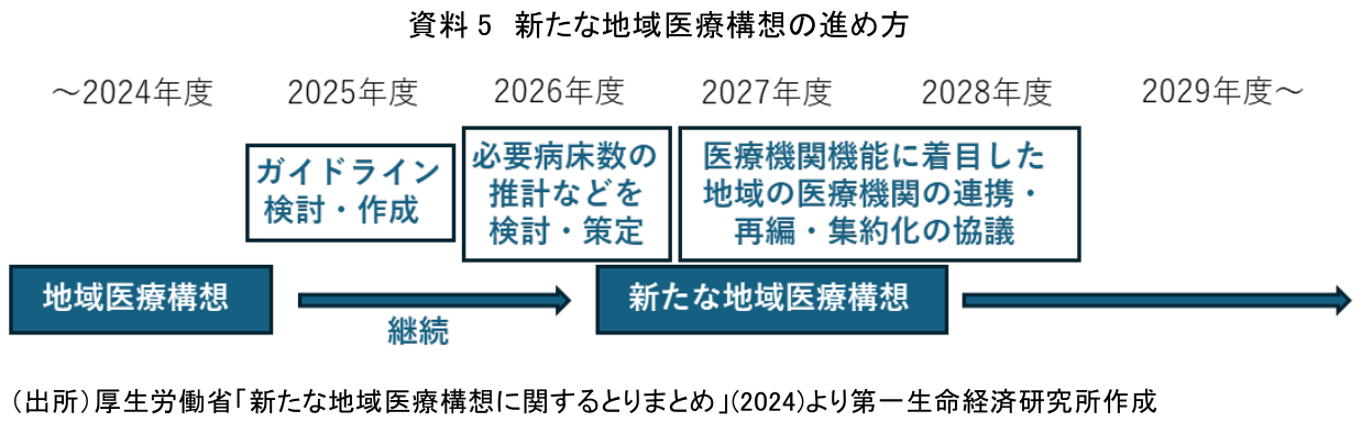 次に、医療機関に関する直近の動向などについて考える。ここでは特に厚生労働省が2024年12月に公表した「新たな地域医療構想に関するとりまとめ」の内容などを踏まえて検討する。