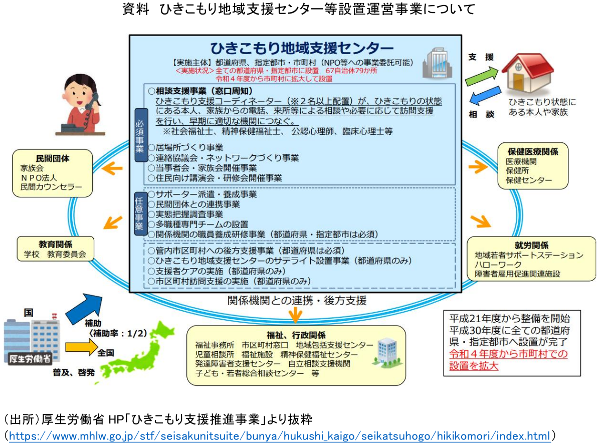 親が要介護状態になったり亡くなったりすると、子どもの生活が立ち行かなくなり、孤立や生活困窮に陥るリスクが高まります。また、問題を家族内に抱え込み、行政や地域とのつながりが希薄になりがちなことも事態を深刻化させています。これは単なる家庭の問題にとどまらず、社会全体が抱える「高齢化・孤立・貧困」の一例ともいえるでしょう。解決には、行政による包括的な支援や地域コミュニティによる見守り、医療や就労支援との連携等が不可欠です。今後、「9060問題」へと深刻化する前に、社会全体での継続的な支援体制の整備・拡充が求められます(資料)。