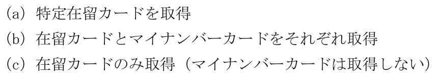 一方で、特定在留カードの申請は任意であり、(a)特定在留カード取得、(b)在留カードとマイナンバーカードをそれぞれ取得、(c)在留カードのみ取得、の三択が生じる。これにより、制度運用上の複雑化が懸念される。