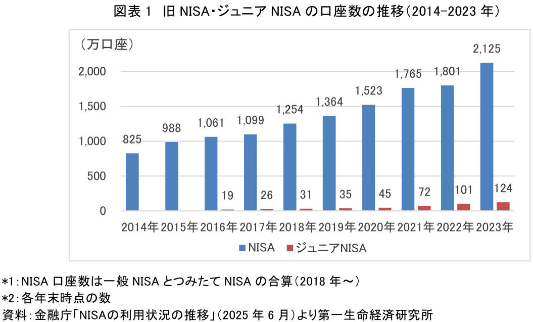 旧NISA制度では、2016年に開始されたジュニアNISAが設けられていたが、2023年末で新規口座の開設は終了した。原則として18歳になるまでは払い出しができない点などが障害となり(注1)、想定よりも普及が進まなかったことが一因といわれている。