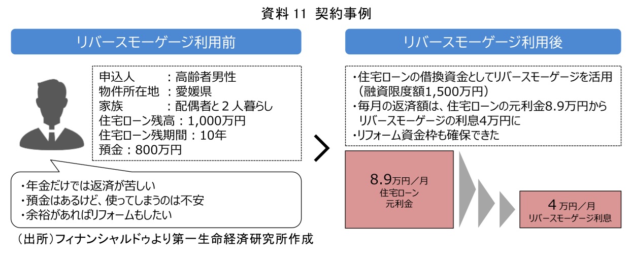では、これらのリバースモーゲージは実際にはどのように利用されているのだろうか。具体的な契約事例をみてみたい。