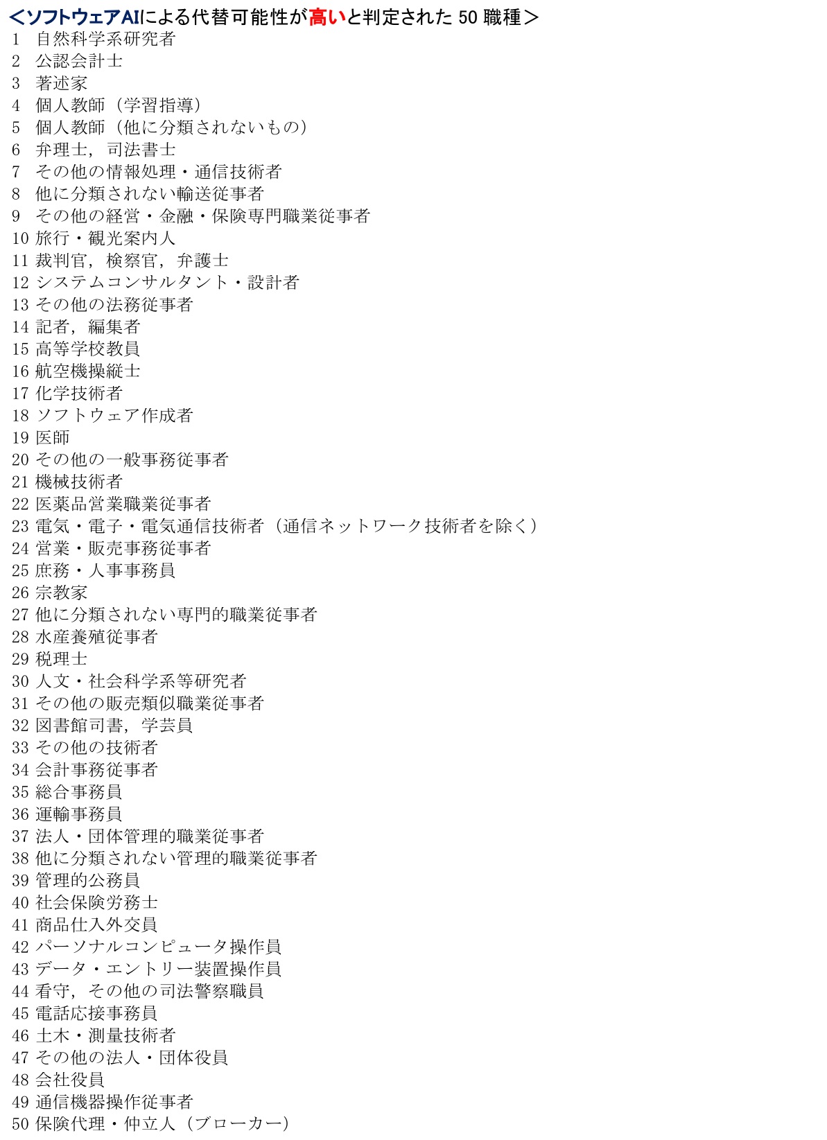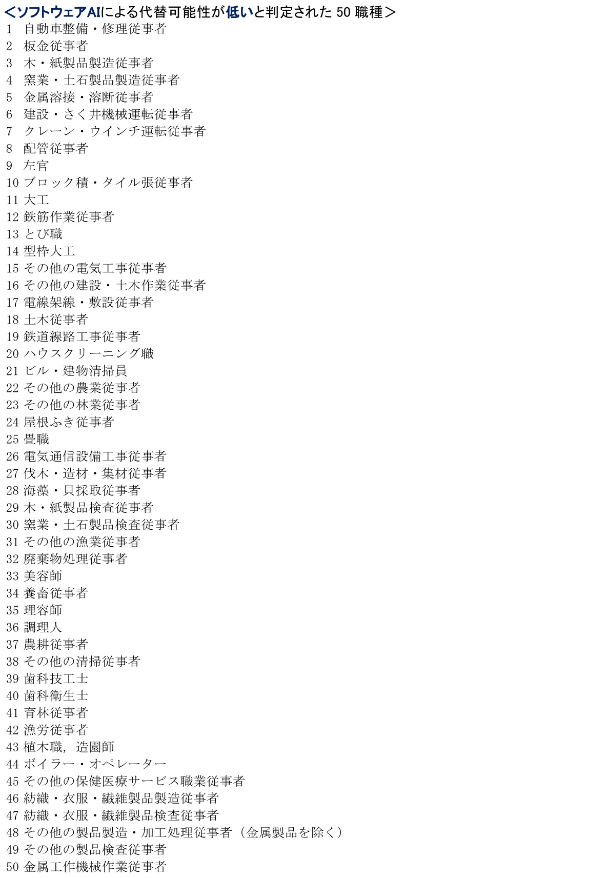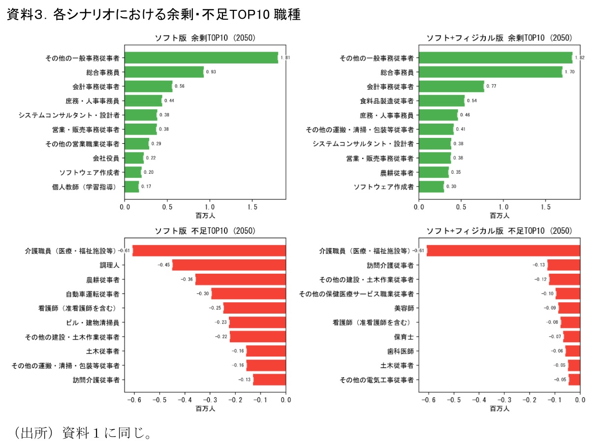 (ソフトウェアAIシナリオにおいて余剰が大きい職種(2050年))
