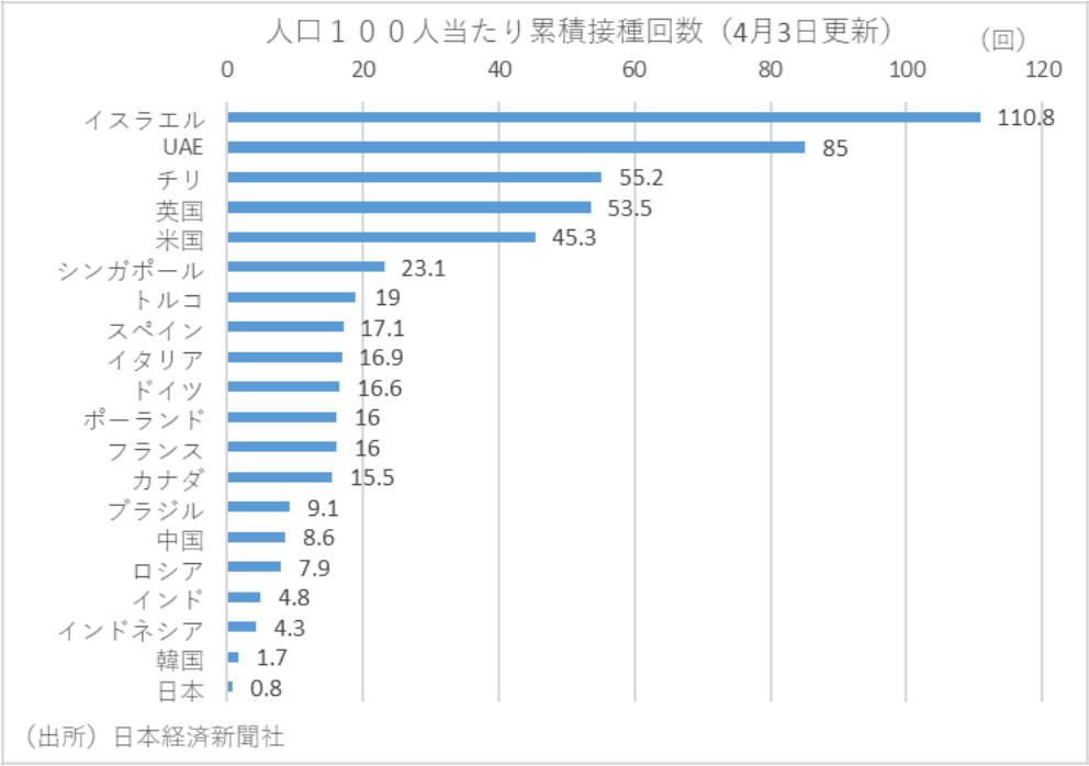 こうならないためにも、政府は海外を見習い、国産ワクチン実用化も含めて、国内でのワクチン接種率をさらに加速させるべく柔軟で迅速な対応が求められるといえよう。
