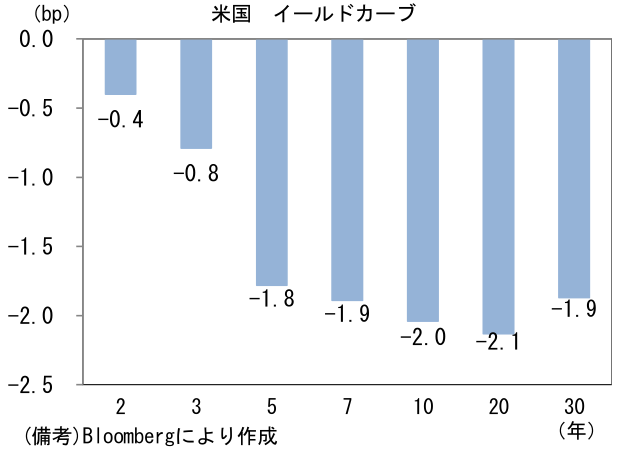 - 米金利カーブはブル・フラット化傾向。予想インフレ率(10年BEI)は2.460%(+1.3bp)へと上昇。債券市場の実質金利は▲0.864%(▲3.1bp)へと低下した。