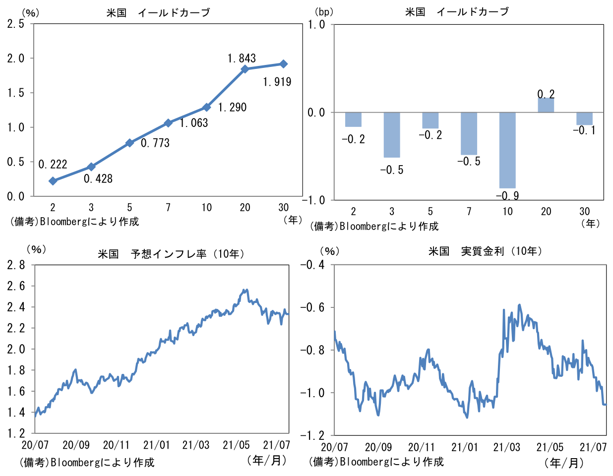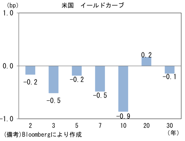 - 米金利カーブは小動きも10年は1.3%を明確に割れた。債券市場の予想インフレ率(10年BEI)は2.333%(▲0.6bp)へと低下。実質金利は▲1.055%(▲0.1bp)へと低下し年初来の上昇を帳消しに。