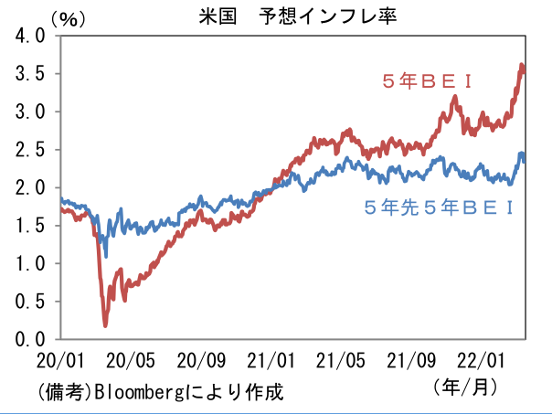 - 米金利は5~10年が金利上昇。債券市場の予想インフレ率(10年BEI)は2.858%(▲9.2bp)へと低下。5年先5年予想インフレ率は11.4bp低下。10年実質金利は▲0.718%(+10.2bp)へと上昇。
