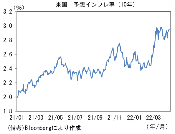 - USD/JPYの先行き12か月見通しを125へと変更する(従来117)。為替市場で日米金利差拡大が強く意識されており、今後しばらく米金利が高止まりする下で円安傾向が続くと予想した。目下、Fedの利上げ幅については75bpすら意識されており、当面は米金利上昇と共にドル買いが膨らみそうだ。また黒田総裁をはじめとする日銀政策委員の為替認識にほとんど変化がみれていない点も重要。この間、黒田総裁は「円安は日本経済にとってプラス」との基本見解は崩しておらず、そうした認識の下で日米金利差拡大を促すYCCを継続する構えを示しており、日銀は指値オペを駆使して10年金利を0.25%以下の水準に抑える公算が大きい。投機筋は日銀の円安牽制に怯えることなく、ポジションを膨らますことができる。もっとも、夏場以降はFedのタカ派度合いが幾分弱まると予想される。現在のUSD/JPYと強い連動性を有する5年金利の上昇が一服し、USD/JPYの方向感は下向きないしは横ばいに転じるだろう。Fedが利上げ幅を50bpから25bpに戻す際に、そうした変化が起きると予想する。なお、筆者はUSD/JPYが130を超えても政府が為替介入に踏み切ることは想定しておらず、また日銀がYCC修正や指値オペ見送りなどといった政策変更を実施する可能性も2023年4月までは低いとみている。