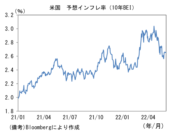 ところで3日発表の雇用統計はどういった結果が金融市場参加者にとって望ましいのであろうか。荒削りの表現ではあるが、それは「平均時給以外の項目が強く改善する結果」であろう。すなわち労働参加率の上昇を伴い失業率が低下し、雇用者数が強く伸びる、一方で平均時給は減速するという結果である。通常の金融引き締め局面において「強すぎる雇用統計」は金融引き締めを正当化し、金融環境が更に引き締まる結果を招いてしまうが、今次局面においては労働市場の回復が供給制約の緩和を通じてインフレ圧力を抑制する側面があるため、強い雇用統計はFedが金融引き締めの手を緩める材料になり得る。平均時給の伸び率鈍化は、消費者の購買力がインフレ負けするという点においてネガティブであるが、労働コスト増加それ自体がインフレの根源となっている現状においては賃金と物価の相互刺激的上昇を適正レベルに抑えると期待されるため、ポジティブであろう。なお5月雇用統計の予想中央値は非農業部門雇用者数が32.5万人増加、失業率は3.5%へと0.1%pt低下、労働参加率は62.3%へと0.1%pt上昇、平均時給は前月比+0.4%、前年比+5.2%となっている。