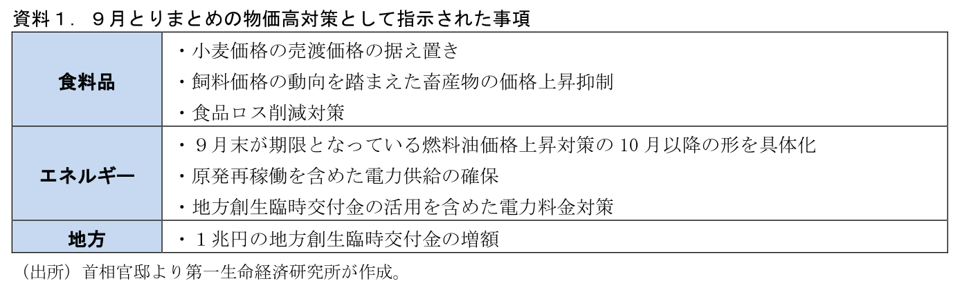 論点①:物価高対策&第2次補正予算:第2次補正予算の真水額は10兆円台後半を軸に議論か