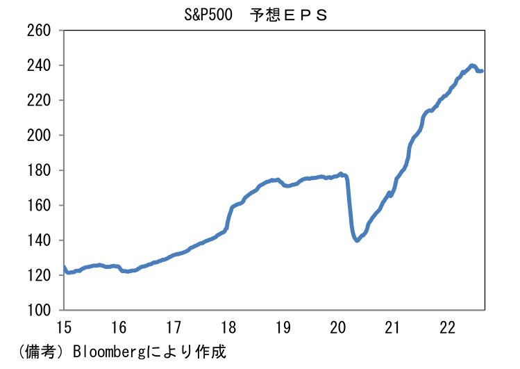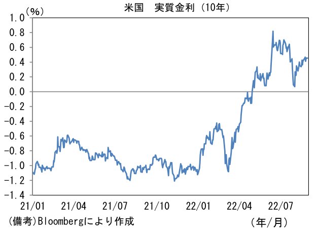 利上げの頂点(ターミナルレート)が4%に達するとの見通しは6月にも経験しているが、今後4.5%への到達が市場参加者の見通しにアンカーされれば10年や30年金利が6月水準を超えても不思議ではない。そうであれば金利低下を追い風に楽観的な雰囲気に包まれてきた株式市場は再度逆風に晒される。S&P500は8月12日に1月の高値から6月安値までの下落幅の半分を取り戻す「半値戻し」を達成しそのこと自体が楽観論に拍車をかけていたが、そうした雰囲気をFedは良しとしなかった。業績見通しが慎重化する中で再度金利上昇に見舞われれば「半値戻しは全値戻し(を達成する)」との相場格言に疑問を投げかけるのではないか。