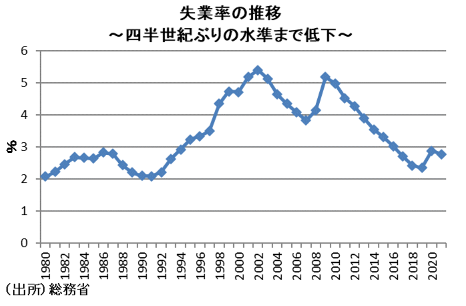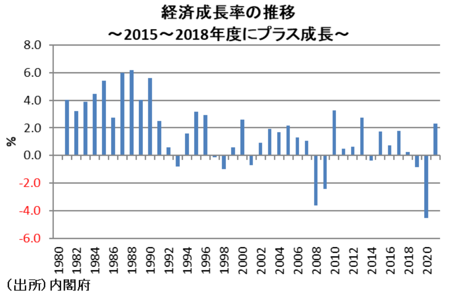 アベノミクス以降の日本経済は、景気が好転したとされている。GDP統計によれば、日本経済は消費増税と景気後退期を除く2013年度と2015~2018年度にプラス成長を達成した。また、失業率は 2017年度に23年ぶりに3%を下回り、現時点でもそれを維持している。しかし、実質賃金の低下を理由に、このような景気好転を体感温度の上昇として実感できている人は必ずしも多くないとする向きもある。