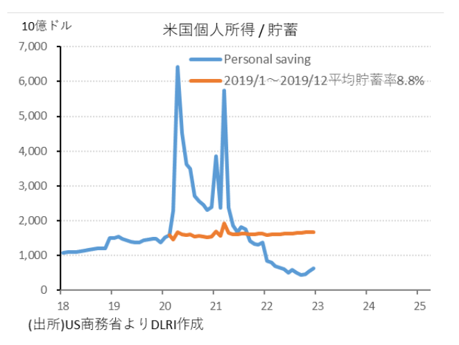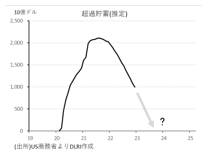 - 足元超過貯蓄は1兆ドル規模まで取崩されているが引き続き実質消費を支えるには十分