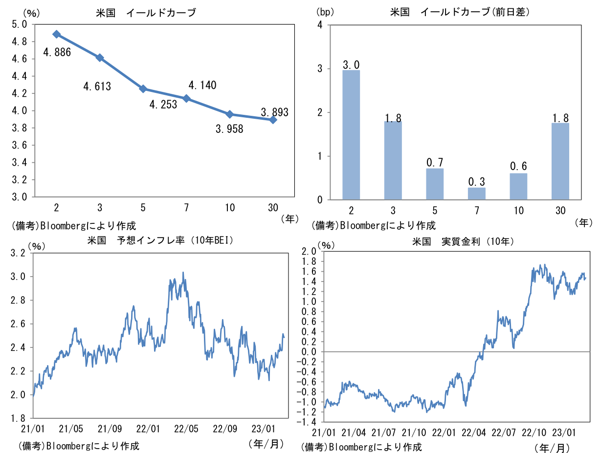 - 米金利は上昇傾向。債券市場の予想インフレ率(10年BEI)は2.485%(▲3.0bp)へと低下。実質金利は1.469%(+3.7bp)へと上昇。