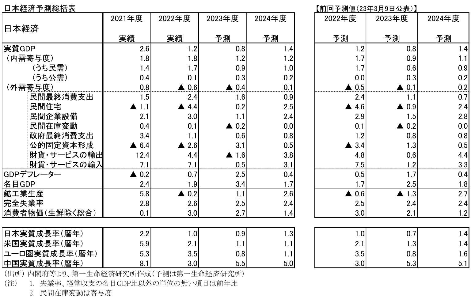 最新の見通しは、2023・2024年度日本経済見通し(2023年8月)(2023年4-6月期GDP1次速報後改定)をご覧下さい。