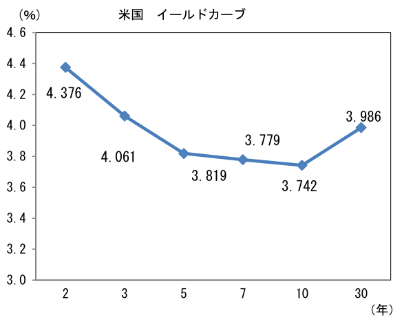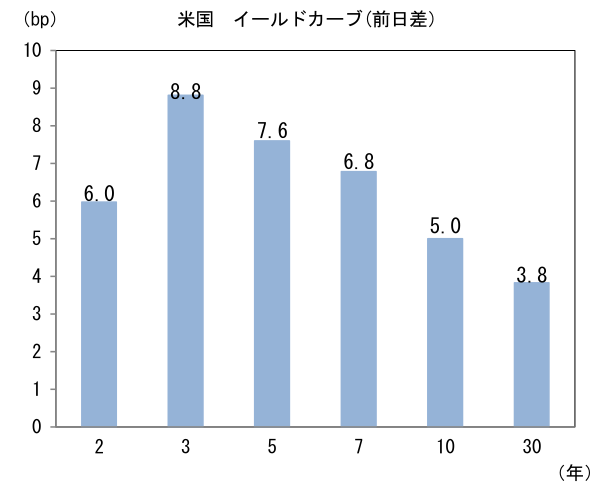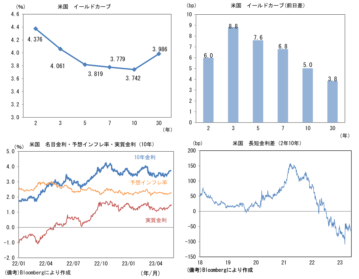 米金利はベア・フラット化傾向。予想インフレ率(10年BEI)は2.263%(▲2.0bp)へと低下。実質金利は1.485%(+7.0bp)へと上昇。長短金利差(2年10年)は▲63.8bpへとマイナス幅拡大。