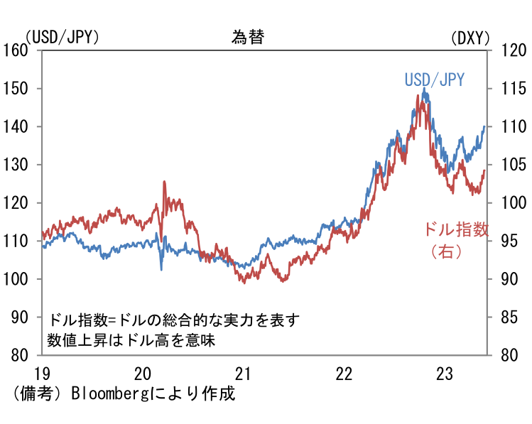 - 話を元に戻すと、USD/JPYが140を超えて輸入物価への上昇圧力が高まると、日銀は現行の緩和策を維持することの説明が難しくなる。植田総裁が円安とどう付き合っていくのか未知数の部分は大きいが、いずれにせよ6月と7月の金融政策決定会合はYCCの修正機運が高まる可能性がある。