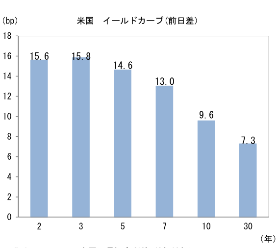 - 米金利カーブはブル・スティープ化。予想インフレ率(10年BEI)は2.204%(+2.8bp)へと上昇。