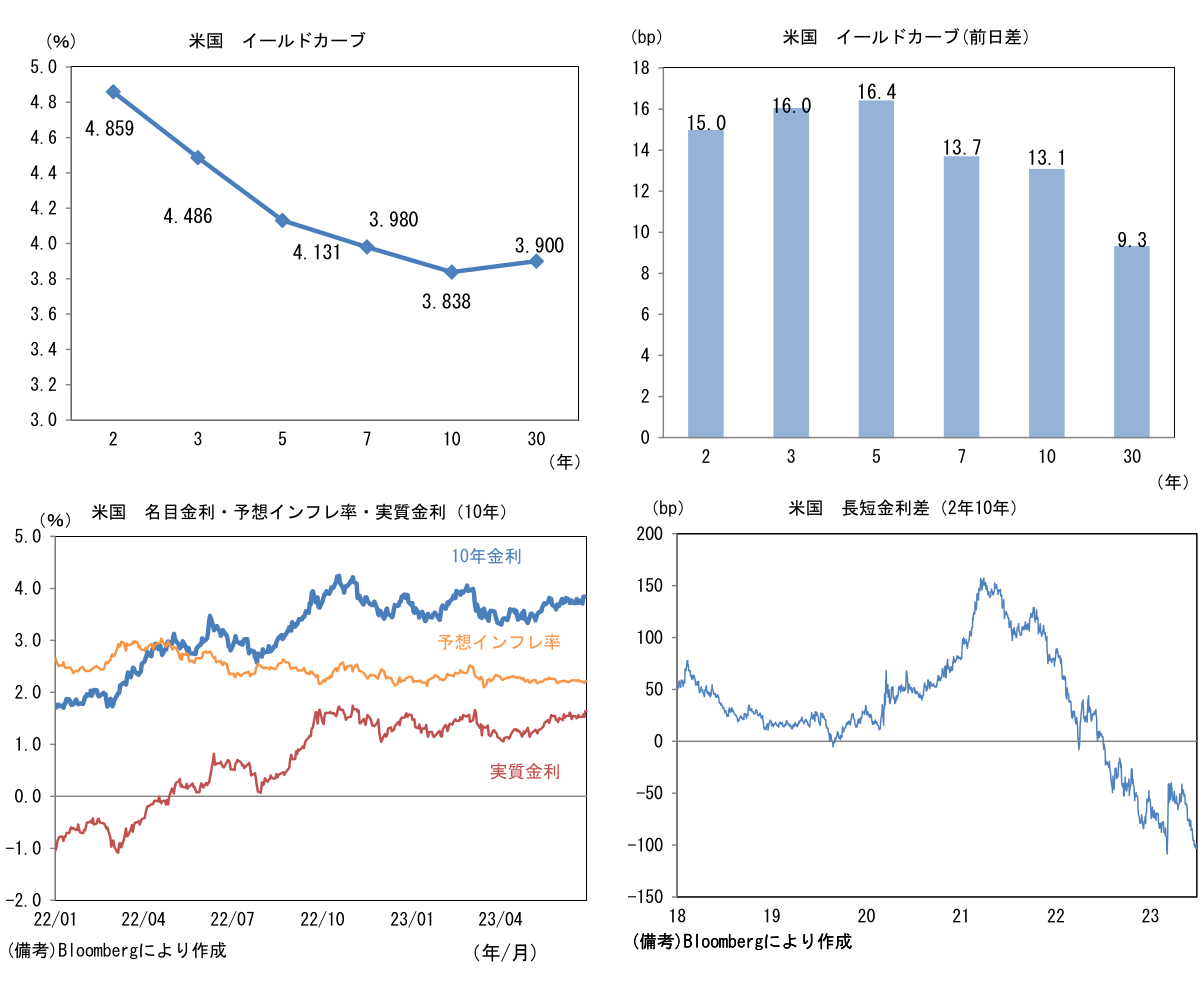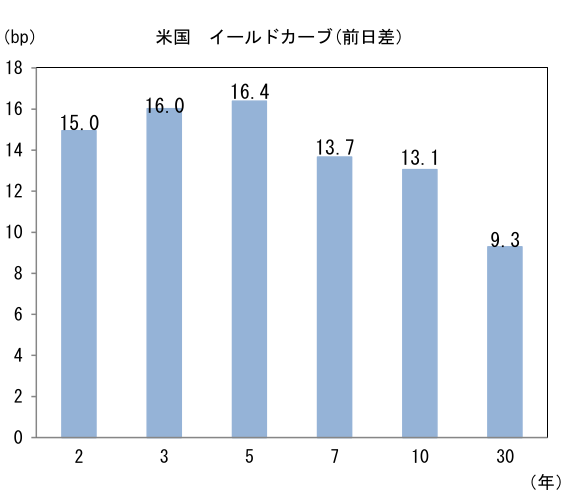 - 米金利はベア- フラット化。予想インフレ率(10年BEI)は2.209%(+2.4bp)へと上昇。 実質金利は1.637%(+10.8bp)へと上昇。長短金利差(2年10年)は▲102.7bpへとマイナス幅拡大。
