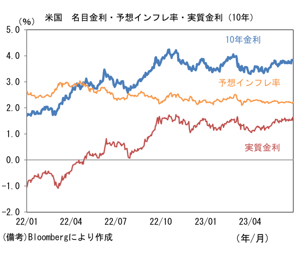 - 為替(G10通貨)はUSDが堅調。USD/JPYは144後半へと上昇。コモディティはWTI原油が69.9㌦(+0.3㌦)へと上昇。銅は8177.5㌦(▲77.5㌦)へと低下。金は1917.9㌦(+5.6㌦)へと上昇。