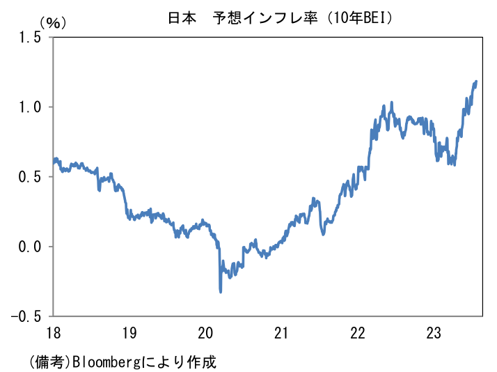 7月28日の日銀の金融政策決定会合については、一部でイールドカーブコントロールの修正が予想されているものの、急激な円安が一服していることやイールドカーブの歪みが是正されていることもあり、今回は現状維持となるだろう。政策修正を予想する向きは、今回更新される展望レポートにおける物価見通しの上方修正がその理由になるとみているようだが、物価指標は政策支援(エネルギー補助、全国旅行支援)によって攪乱されており実勢把握が困難である他、日銀が重要視している賃金については春闘反映後のデータが2ヶ月分しか入手できていない。一人当たりの賃金動向を示す毎月勤労統計は5月に所定内給与が前年比+1.7%まで伸びを高めたとはいえ、単月の数値が政策修正の十分な根拠になるかと言えばそれは疑問。賃金に明るい兆しが見える中、債券市場の予想インフレ率(10年BEI)が上昇し、日銀短観では企業の販売価格見通し(≒価格設定行動)が上向くなど、物価に対する人々の認識が変化しつつある証左も散見されるが、日銀はもう少しその傾向を見守りたいと考えていると思われる。植田総裁はこれまで「拙速な政策転換を行うことで、ようやくみえてきた2%の物価目標達成の『芽』を摘んでしまうことになった場合のコストはきわめて大きい」と繰り返してきた他、直近では7月18日に持続的・安定的な物価2%目標達成には「まだ距離がある」と発言している。日本の物価上昇率が2%を大きく超え、海外金利が落ち着き円金利急騰のリスクが低下している現状、YCCという強力な金融緩和を修正すること自体に違和感はないが、植田総裁の発言を反故にするようなYCC修正が現段階で決定されるとは考えにくい。