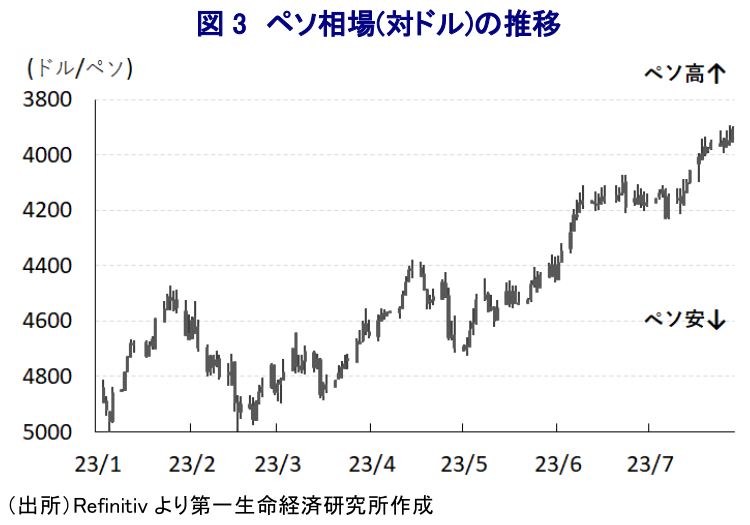 メキシコ中銀は13会合ぶりの利下げ局面休止、一進一退が続くか ~インフレの目標回帰時期は2027年半ばに後ズレ、ペソ相場は外部環境に左右される展開が続く~