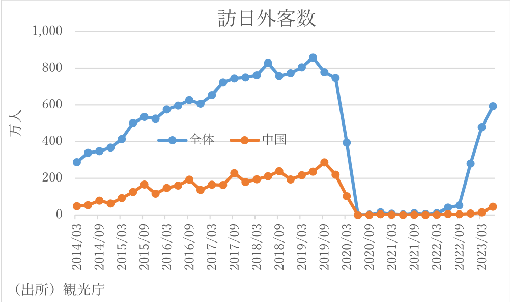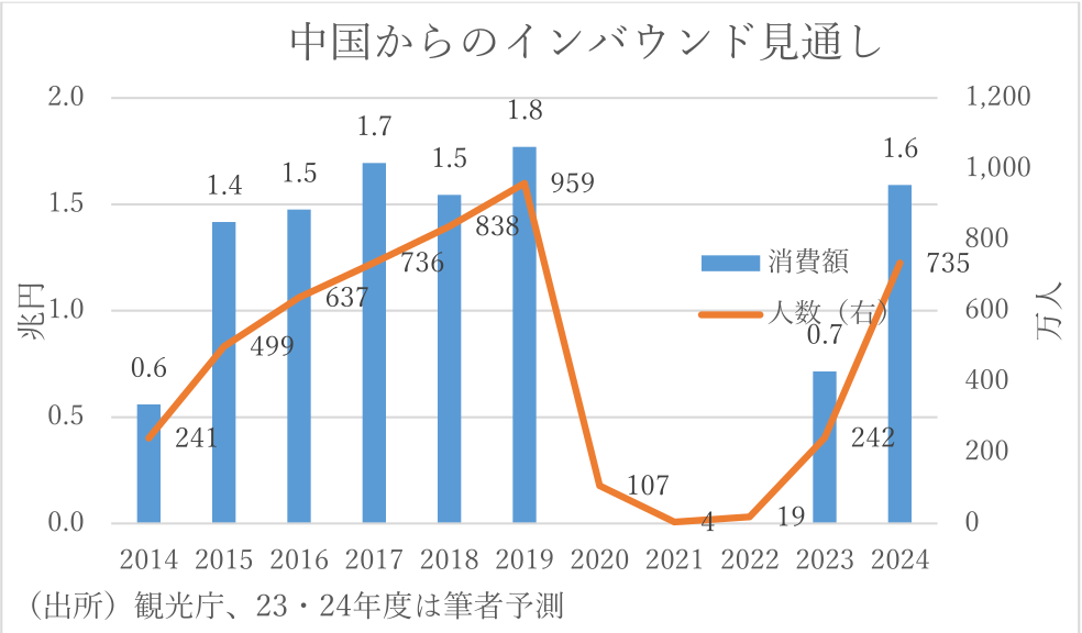 中国人観光客に限れば、来年もコロナ前に到達しない可能性
