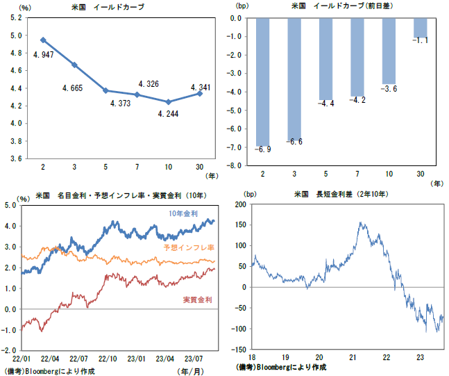 米金利はブル・スティープ化。予想インフレ率(10年BEI)は2.314%(+0.9bp)へと上昇。実質金利は1.930%(▲4.2bp)へと低下。長短金利差(2年10年)は▲70.9bpへとマイナス幅縮小。