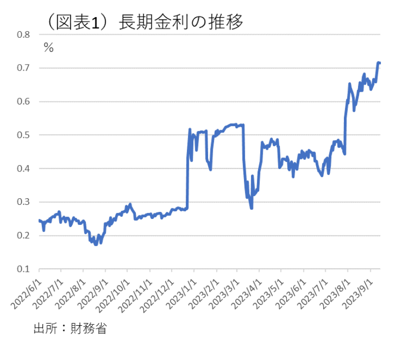 長期金利が0.7%台まで上昇した(図表1)。2014年以来のことである。長期金利が0.7%に向かうに当たって、日銀は臨時オペでその上昇を敢えて牽制しなかったことで、上昇が促された面もある。