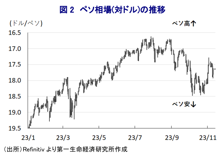 ~先行きの政策運営について幾分タカ派姿勢を後退も、当面のペソ相場は堅調な推移が続くか~