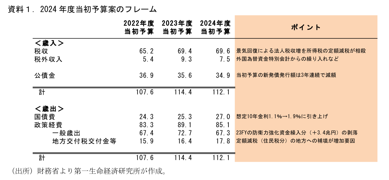2024年度予算案:歳出規模・新発債発行額を縮減