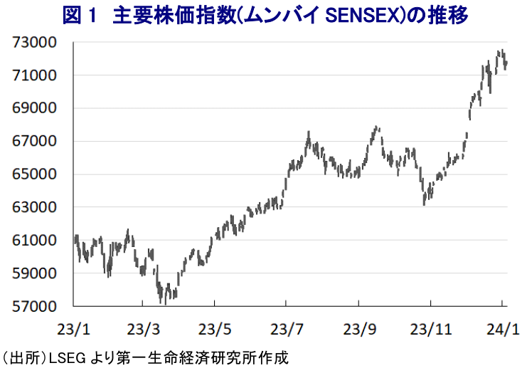 - 昨年のインド株式市場は新興財閥のアダニ・グループを巡る不正疑惑、いわゆる「アダニ問題」に揺さぶられた。同社は不正を否定する一方で株価は急落したほか、モディ政権や与党BJPとの距離が近く、今年の総選挙の行方に影響を与えることが懸念された。しかし、前哨戦となった昨年の州議会選ではBJPの強さが示された。また、疑惑への詳細調査を求める公益訴訟を巡って、3日に最高裁は不要とするとともにアダニ側の主張を全面的に支持する判断を下した。足下の主要株価指数は底入れの動きを強めているが、同社への「シロ判定」は追い風となることは期待される。他方、足下の景気実態は足踏み状態の上、企業マインドも頭打ちしており、金融市場は総選挙を前にした動きやその結果を睨む展開をみせると予想される。