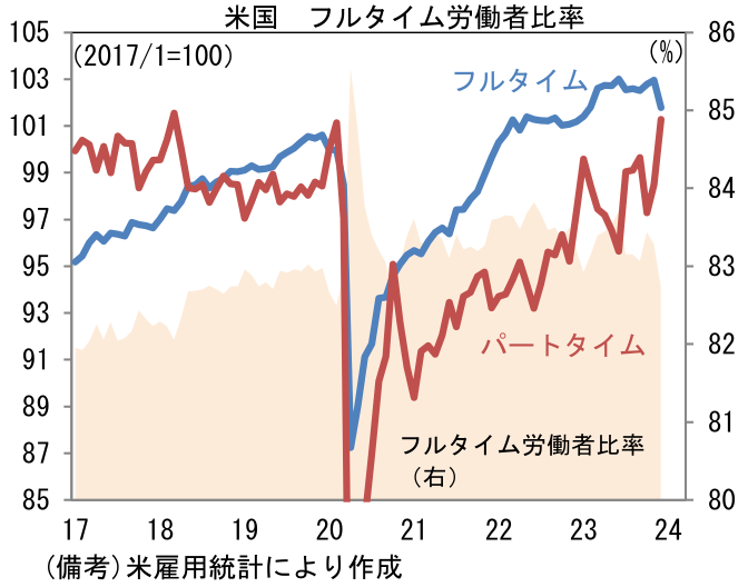 12月米雇用統計は強弱区々ながらも全体としてみれば、労働市場の冷却を印象付ける結果となった。もっとも、金融市場参加者(FF金利先物)が想定する、年内5~6回の利下げを正当化する内容には見えなかった。1・2月分の雇用統計で顕著な冷却が観察されなければ3月の利下げは見送られる公算が大きいだろう。場合によっては利下げ開始時期のコンセンサスが現在の5月から後ずれする可能性もある。