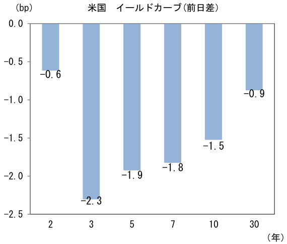 - 米金利はカーブ全般で金利低下。予想インフレ率(10年BEI)は2.228%(▲0.1bp)へと低下。