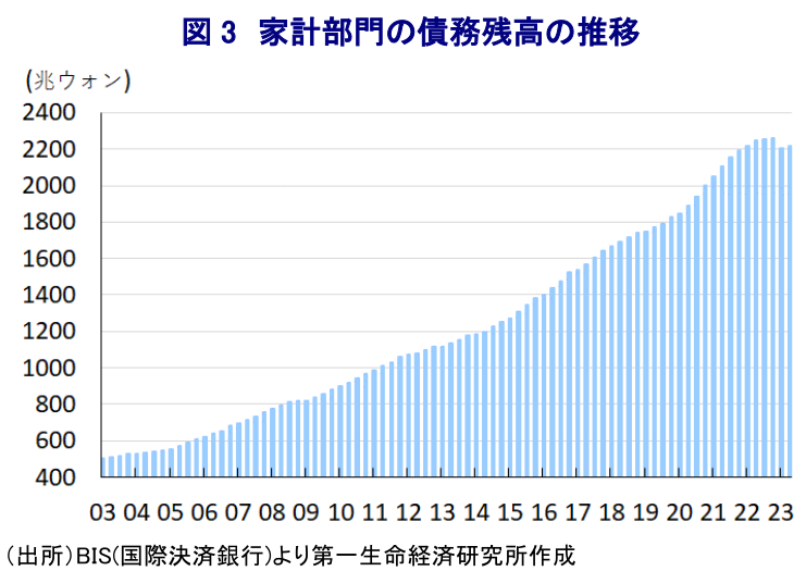 韓国では、2022年に発足した尹錫悦(ユン・ソンニョル)政権に対する『中間評価』となる総選挙(国会(一院制:総議席数300))が4月10日に実施されるなど、残り3ヶ月を切るなかで『政治の季節』は佳境を迎えている。なお、現状は尹政権を支える保守政党である与党の「国民の力」は国会内で少数派に留まるなど、大統領と国会の間でいわゆる『ねじれ状態』にあり、政権が独自の政策運営を行う上での障壁となっており、仮に総選挙において与党が多数派を奪取することが出来れば政策遂行が容易になることが期待される。ただし、与野党による泥仕合が激化する形で国民の間の分断を一段と露わにする格好となった大統領選の末に誕生した尹政権を巡っては(注1)、発足直後から支持率は大きく低下するとともに、足下では30%台の『低空飛行』状態で推移するなど政権浮揚の機会を得られない状況が続いている。こうした要因のひとつには、尹氏が検事総長出身という経歴も影響して政権内に検察官出身者が多数占めるほか、長年の課題とされる労働組合改革などを断行するなかで野党は『検察独裁』といったレッテルを張る形で批判を強めていることも重なり、政権運営を巡って国民の間に『強権』との印象が強まっていることを挙げる向きがみられる。他方、大統領選においては経済問題が争点となっていたにも拘らず、尹政権による経済政策を巡る『無策ぶり』が支持率低迷の一因になっているとの見方も強い。なかでも文在寅(ムン・ジェイン)前政権下においてはコロナ禍対応を目的とする金融緩和を追い風とする『カネ余り』のなかでコロナ禍一巡による景気回復の動きも重なり、首都ソウルを中心とする不動産価格の高騰が格差拡大を招くとともに国民の間に不満が高まる一因となってきたこともあり、尹政権は不動産政策の転換を謳う姿勢をみせてきた。しかし、現実には一昨年来の商品高や米ドル高によるインフレ昂進を受けて中銀は断続利上げを余儀なくされる一方、その後もインフレが高止まりするなかで物価高と金利高が共存する状況が長期化する展開が続いている。なお、韓国経済は構造面で輸出依存度が相対的に高く、足下の景気は外需をけん引役に底入れの動きを強めているものの、上述のように物価高と金利高の共存状態が長期化するなかで家計、及び企業部門ともに厳しい状況に直面しており、家計消費を中心とする内需は伸び悩む展開をみせている。とりわけ不動産価格の高騰による悪影響が直撃してきた若年層の雇用を取り巻く環境は依然として厳しい展開が続いており、家計消費の回復が遅れる一因となっている。他方、金利上昇に伴い債務負担が増大するなかで上昇の動きを強めてきた不動産市況は一転して頭打ちしており、逆資産効果による実質購買力への下押し圧力も重なり、家計消費の足かせになっているとみられる。結果、世論調査においては一貫して革新派の最大野党「共に民主党」が国民の力を上回る推移が続いており、与党は劣勢状態となっている。今月初めには共に民主党の李在明(イ・ジェミョン)代表が地方視察中に襲撃される事態となったが(李氏は10日に退院)、この事件やその背後関係なども総選挙の行方に少なからず影響を与える可能性も考えられる。