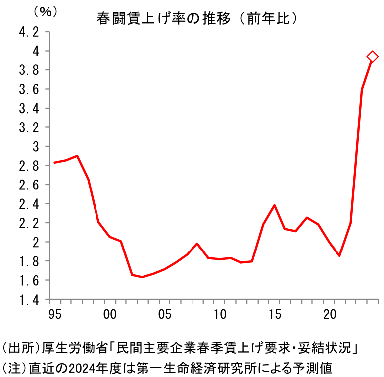 ~春闘賃上げ率は+3.95%と、23年をやや上回ると予想~